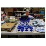 1275 Two box lots to include washcloths, curtains, place mats, glass bowls, salts, serving bowls, rose plate, butterflies bowl