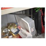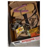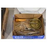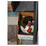 Antiques and Collectibles: Sterling Utensil set, Candle Holders & Mirror, Pottery Chicken Waters, Pottery Crocks with Blue, Roseville Pottery, (36) lots of Bottles, Quilts, Advertising Thermometers, Locks with Keys, Animal Traps, Farm Equipment Manuals, Cast Animals, Microscope, Bead Purse, Sewing Items, Lladro Figurines, Cast Fry Pans, Antique/Restored Tools, Lanterns, Baseball Cards, Clocks, Wood Advertising Boxes, (8) Lots of Lighters, Wallace Nutting Pictures, Tin Advertising Signs, Parrot Cage, Oil Lamps, Atlas Jars, Woven Baskets, Powder Flask, Littlestown Vise, Pyrex Dishes,