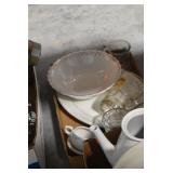Antique Glassware: Milk Glass, Pink Milk Glass, Art Glass, Ruby Glass, Green Glass, Glass Banks, Pink Depression, Uranium Glass, Sturart England Glass, Noritaki Dish Set, and Other