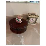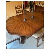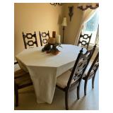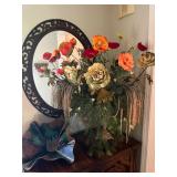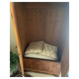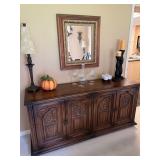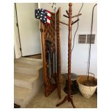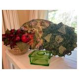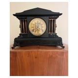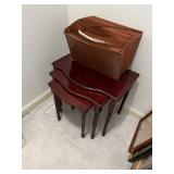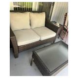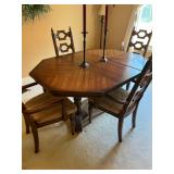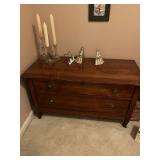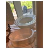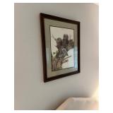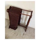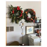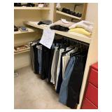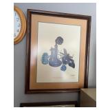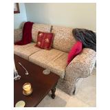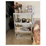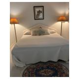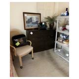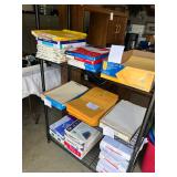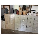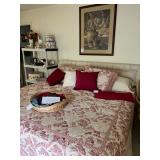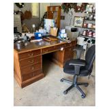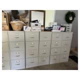 Sofa, nice wood trimmed armchair, storage armoire, wood open up server, mid-century modern dining room suite with large side server, assorted baskets, framed artwork, retro wood kitchen table with six chairs on wheels, collection of roosters, blue and white assorted plates,etc., nice glassware and crystal, coffee tables, antique wood kitchen hutch, Noritake China, king size beds, nice linens, quilt racks, ladies and men's clothing, full size brass bed, antique male sorter desk, ladies upholstered white chaise lounge, antique Singer sewing machine base, floor lamps, stacking end tables, assorted golf clubs, small floral wingback, Hamilton wall clock with chimes, brown wicker sofa and matching coffee table, outdoor black mesh metal outdoor serving cart, two round mesh metal outdoor tables with chairs, two glider chairs, 8 metal four-drawer file cabinets, 1-two drawer file cabinet, two upholstered desk chairs, lots of copy paper and address labels, large wood office desk, medium size wood desk with hutch top, large grill with cover, shower chair, bedside toilet chair, four prong cane.
