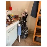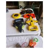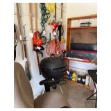 Workshop items: Lots of assorted yard tools, wheelbarrow, golf cart tire rims new, small shop back, table saw, assorted hand tools and power tools, router table, circular saw, 6 ft aluminum ladder, 12 ft extension ladder, electric edger / trimmer, vintage standing heavy metric vice, Chase Parker bench vice, Carpenters mate stand, Callaway golf bag, assorted golf clubs & TaylorMade Callaway iIdea Verex, golf ball retriever, Coleman golf cart heater, assorted golf balls. There are many items not listed. Come enjoy & browse! |
