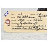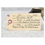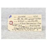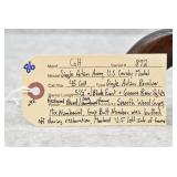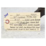 Firearms #221-493 – To Be Sold at 10:00 AM (Approx.): 221. Winchester – Mod. 1873 3rd Model – 32-20 WCF Cal. Lever Action Rifle – w/24” Round Barrel w/Blade Front & Adj. Rear Sights w/Full Length Tubular Magazine – Blued/Brown Finish – w/Straight Grip Wood Stock & Capped Forearm w/Crescent Metal Butt Plate – w/Dust Cover – Mfg. 1888 222. Winchester – Mod. 1873 3rd Model – 32 WCF Cal. Lever Action Rifle – w/24” Octagon Barrel w/Blade Front & Adj. Rear Sights w/Full Length Tubular Magazine – Brown Finish – w/Straight Grip Wood Stock & Capped Forearm w/Crescent Metal Butt Plate – w/Factory Dust Cover – Mfg. 1889 223. Winchester – Mod. 1873 3rd Model – 22 Long Cal. Lever Action Rifle – w/24” Octagon Barrel w/Blade Front & Adj. Rear Sights w/Full Length Tubular Magazine – Brown Finish – w/Straight Grip Wood Stock & Capped Forearm w/Crescent Metal Butt Plate – w/Dust Cover – Mfg. 1888 224. Winchester – Mod. 1873 Very Early 3rd Model – 44-40 Win. Cal. Lever Action Rifle – w/20” Shortened Barrel w/Blade Front & Adj. Carbine Ladder Style Rear Sights w/Full Length Tubular Magazine – Blued/Brown Finish – w/Straight Grip Wood Stocks w/Crescent Metal Butt Plate w/Storage Access – w/Dust Cover – Mfg. 1882 225R. Winchester – Mod. 1895 Musket – 7.62mm Russian Cal. Lever Action Rifle – w/28” Barrel w/Blade Front & Adj. Rear Ladder Sights – Blued/Gray Finish – w/Straight Grip Wood Stock w/Metal Butt Plate w/Storage Access & Full Length Forearm w/Finger Groove Top Guard – w/Sling Loops 226R. Winchester – Mod. 1895 – 30 US Cal. Lever Action Rifle – w/28” Barrel w/Blade Front & Adj. Rear Sights – Blued/Brown Finish – w/Straight Grip Wood Stocks w/Metal Butt Plate – w/Climan Lyman Frame Mounted Adj. Rear Peep Sight – w/Engraved Coyote Desert Scene on Right Side of Butt Stock – w/Filled Holes in Barrel – Mfg. 1911 227R. Winchester – Mod. 1892 – 38 WCF (38-40 Win) Cal. Lever Action Rifle – w/24” Octagon Barrel w/Blade Front & Adj. Rear Factory Sights w/Full Length Tubular Magazine – Blued Finish – w/Straight Grip Wood Stock & Capped Forearm w/Crescent Metal Butt Plate – Mfg. 1907 228R. Winchester – Mod. 1894 Saddle Ring Carbine – 30-30 Win. (30 WCF) Cal. Lever Action Rifle – w/20” Barrel w/Blade Front & Adj. Rear Sights w/Full Length Tubular Magazine – Blued/Brown Finish – w/Straight Grip Wood Stocks w/Metal Carbine Butt Plate & Saddle Ring – Mfg. 1911 229. Colt – Mod. Lightning Large Frame – 45-85-285 Cal. Pump Action Rifle – w/28” Octagon Barrel w/Silver Blade Front & Adj. Rear Sights w/Full Length Tubular Magazine – Brown/Gray Finish – w/Straight Grip Wood Stock & Checkered Forearm w/Factory Metal Butt Plate w/Visible Rampant Colt – Mfg. 1891 – Note: Repaired Pistol Grip 230. Colt – Mod. Lightning Medium Frame – 32-20 WCF Cal. Pump Action Rifle – w/22” Octagon Barrel w/Blade Front & Adj. Rear Sights w/Full Length Tubular Magazine – w/Straight Grip Wood Stock & Checkered Forearm w/Crescent Metal Butt Plate w/Visible Rampant Colt – Mfg. 1891 231. Colt – Mod. Lightning Small Frame – 22 Cal. Pump Action Rifle – w/24” Octagon Barrel w/Factory Sights & Half Length Tubular Magazine – Blued/Brown Finish – w/Straight Grip Wood Stocks w/Colt Hard Rubber Butt Plate – Mfg. 1898 232. Colt – Mod. Colt-Burgess Lever Action Rifle – 44-40 Cal. Lever Action Rifle – w/25 ½” Round Barrel w/Beaded Front & Sporting Rear Sights – Gray Finish – w/Straight Grip Wood Stocks w/Crescent Metal Butt Plate – w/Full Magazine Tube – Only 6,403 Mfg. Between 1883-1885, of That 6,403 Mfg., Only 1,219 Were Mfg. w/Round Barrel 233. Marlin – Mod. 1892 – 22 Cal. Lever Action Rifle – w/28” Octagon Barrel w/Blade Front & Adj. Rear Sights w/3/4 Length Tubular Magazine – Blued/Brown Finish – w/Straight Grip Wood Stock & Capped Forearm w/Crescent Metal Butt Plate – Mfg. 1898 234. Marlin – Mod. 1893 – 38-55 WCF Cal. Lever Action Rifle – w/26” Octagon Barrel w/Silver Blade Front & Adj. Rear Sights w/Full Length Tubular Magazine – Blued/Brown Finish – w/Straight Grip Wood Stock & Capped Forearm w/Factory Crescent Metal Butt Plate – Circa 1898 235R. Marlin – Mod. 97 Takedown – 22LR Cal. Lever Action Rifle – w/24” Octagon Barrel w/Blade Front & Adj. Rear Buck Horn Sights – Re-Blued Finish – w/Straight Grip Wood Stocks w/Factory Butt Plate – Wood Appears Refinished – As New! 236R. Marlin – Mod. 38 (Takedown) – 22 Cal. Pump Action Rifle – w/24” Octagon Barrel w/Front Blade & Adj. Rear Sights – Blued Finish – w/Plain Wood Pistol Grip Stock & Grooved Forend w/“Marlin Safety” Marked Chipped Butt Plate – w/Tubular Mag – Made Between 1920-1930 237R. Marlin – Mod. 20A – 22 Cal. Pump Action Rifle – w/24” Octagon Barrel w/Blade Front Folding Leaf Sight – Blued Finish – w/Straight Grip Wood Stock & Ribbed Forearm w/Crescent Butt Plate – w/Tubular Mag – Made Between 1907-1922 238R. Marlin – Mod. 97 Takedown – 22 Cal. Lever Action Rifle – w/24” Round Barrel w/Beaded Front & 2-Leaf Rear Sights – Brown/Gray Finish – w/Straight Grip Wood Stocks w/Factory Butt Plate – w/Full Magazine – w/Adj. Rear Tang Peep Sight 239. Marlin – Ballard Patent – Mod. #2 Sporting Rifle Single Shot – 44-40 Win. Cal. Falling Block Rifle – w/30” Octagon Barrel w/Globe Front & Adj. Rear Buckhorn Sights w/Rear Long Range Veneer Tang Adj. Target Peep Sights – Blued/Case Hardened Finish – w/Straight Grip Wood Stocks & Case Colored Crescent Metal Butt Plate 240. Sharps Rifle Co. – Mod. 1878 Borchardt Patent Military Rifle-Old Reliable – 45-70 Cal. Breech Loading Falling Block Rifle – w/32 1/8” Barrel w/Blade Front & Adj. Rear Ladder Sights – Blued Finish – w/Straight Grip Wood Stock & Full Length Forearm w/Checkered Metal Butt Plate – w/Metal Sling Loops & Cleaning Rod – Approx. 6,900 Mfg. 241.