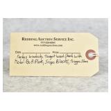 Redding Auction Service Inc. reserves the right to hold any or all merchandise purchased by personal check until the check has cleared the bank. If shipping is requested/required by the purchaser, all packing and UPS/USPS shipping charges will be paid prior to shipping. Forms of Payment Accepted for Purchases: CASH or PENNSYLVANIA CHECKS OUT OF STATE CHECKS WITH PRIOR APPROVAL MC/VISA/DISCOVER/AMEX ACCEPTED (A 4% ADMINISTRATIVE FEE WILL BE CHARGED) YOUR BIDDING ACCEDES YOUR ACCEPTANCE OF THESE CONDITIONS OF SALE.