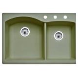 (128) Blanco 441283-3 Diamond 3-Hole Double-Basin Drop-In Granite Kitchen Sink, Truffle