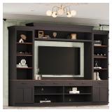 ***Incomplete***Merax Minimalist Entertainment Wall Unit Set with Ample Storage Space and Adjustable Shelves, TV Stand for Televisions Up to 70'', Mid-Century Large Media Console with Wine Rack for Living Room, Black