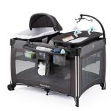 Pamo Babe 4 in 1 Portable Baby Crib Deluxe Nursery Center, Foldable Travel Playard with Bassinet, Mattress, Changing Table for Newborn, Infant, Toddler(Grey)