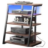 - [Ample Storage & Cable Management] The unit boasts four drawers, open shelves, and two cabinets, with rebounders on the bottom for ease of use. The middle back panel includes four cable holes for organized wire management. Adjustable shelves on both sides offer ample display space for diverse collections.
