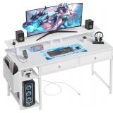 DlandHome 47 inches Medium Computer Desk, Home Composite Wood Board Desk, Decent and Steady Home Office School Desk/Workstation/Table, BS1-120WW White and White Legs, 1 Pack