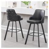 Bar Stools Set of 2, 30" Swivel Bar Height Bar Stools with High Back, Faux Leather Kitchen Bar Chairs for Kitchen Island (Black, 2PCS 30" Bar Stools)