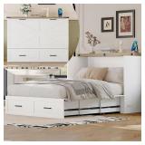 ***Incomplete***Murphy Cabinet Bed with Charging Station, Farmhouse Foldable Platform Bed with Large Storage Drawer for Bedroom,No Box Spring Required (White, Full)
