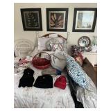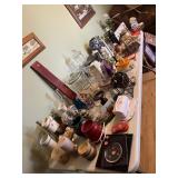 Home decor, precious moments, hanging pictures/art, mirrors, suitcases, lots of vases/jars, corner shelf, various lamps, stuffed animals, books, baseball pants, kids punching bag, various shoes & clothes. Mens, womens and boys clothes. Soccer, football and baseball cleats. Baseball elbow guard and ankle guard. |