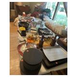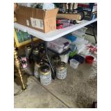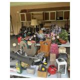 Tools, lawn ornaments, roof rakes, air compressor gun, pipe wrenches, outdoor flood lights, Big Horn gun safe, Sentry small safe, small kitchen appliances, kitchen dish sets, tupperware, storage tubs, glassware, sets of bowls, and lots more ...