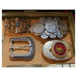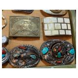 - Belt Buckle Collection (Some Native American Ones W/ Red Coral & Turquoise, Etc.) & Belts (Coach, Wrangler, Etc.)