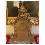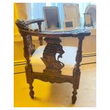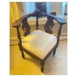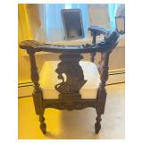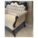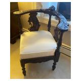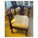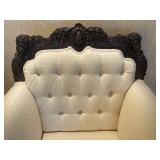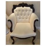 - Beautifully Upholstered Carved Wood Framed Arm Chair