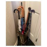 - Ornate Ram's Head Brass Umbrella Holder W/ Decorative Canes