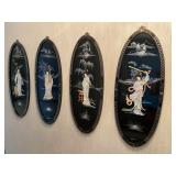 - Set Of 4 Asian Motif Hardstone Wall Panels