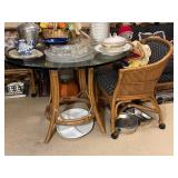 - Wicker Glass Top Table Set W/ Rolling Club Chairs