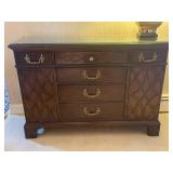 - Sideboard Cabinet W/ 2 Doors, 4 Drawers, & Brass Hardware