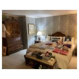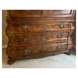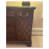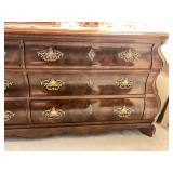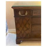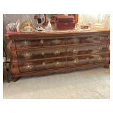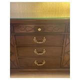 - Elegant Henredon Bedroom Suite W/ Long Lowboy Dresser, Wall Mirror, 2 Nightstands, & Tall Armoire Cabinet