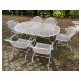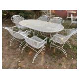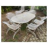 - Wrought Iron Oval Dining Table W/ 6 Bouncing Arm Chairs