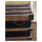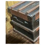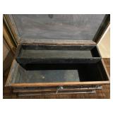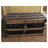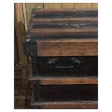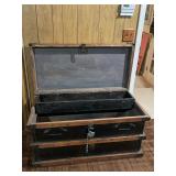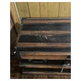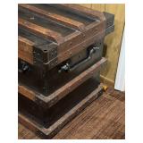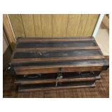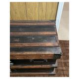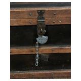 - Antique Wood Steamer Trunk W/ Cast Iron Hardware, Heavy Padlock, & Steel Liner For Cold Storage