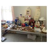 CONTENTS OF HOUSE ,,,,DIGGER'S DE-LITE IN BASEMENT... VINTAGE GOLF CLUBS, RETRO END TABLES, CHINA CABINET, STACK ABLE CHAIRS, MCM COUCH, CANDLES, PLACE MATS, LINENS, CURTAINS, DISHES, GLASSWARE, COLLECTABLE CUPS AND SAUCERS, PICNIC TABLE, POOL TABLE AND ACCESSORIES, , STEP LADDER, LAMPS, STATUES, LENOX, SHELVING, METAL CABINETS WITH SHELVES, VASES, HOLIDAY DECORATIONS, SLEEPER SOFA, DINING ROOM SET, BEDROOM SET, LADIES CLOTHES, LADIES SHOES AND HANDBAGS, STEMWARE, CANDY MOLDS, ART, KITCHEN ITEMS, ARTIFICIAL FLOWERS, SEWING MACHINE, RECORD CABINET, POTS AND PANS, MCM FORMICA TABLE AND CHAIRS, TV CABINET, COUCH, RECLINER, AND MORE. |