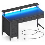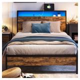 Loft Bed with L-Shaped Desk and USB, Metal Bed with Wardrobe and Adjustable Shelf, High Bed Frame with LED for Bedroom (Black, Full)