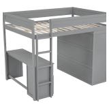 *INCOMPLETE* Harper & Bright Designs Full Loft Bed with Wardrobe and Desk, Wood Full Size Loft Bed with Storage Drawers and Cabinet for Girls Boys Teens,No Box Spring Needed,Grey