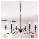 ZJVAIVE 6-Light Black Rustic Candlestick Linear Chandelier Lighting for Dining Room Kitchen Island with No Bulbs Included