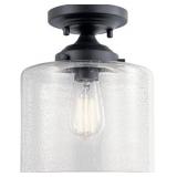KICHLER Winslow 8.5 in. 1-Light Black Hallway Contemporary Semi-Flush Mount Ceiling Light with Clear Seeded Glass