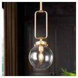 Uolfin Modern Globe Island Pendant Light Naomi 1-Light Brass Gold Round Chandelier Pendant Light with Clear Glass Shade