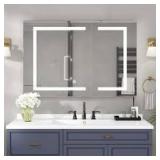 Simple Project 36 in. W x 30 in. H Rectangular Aluminum Light Medicine Cabinet with Mirror, Defogging, Mounted Recessed or Surface