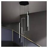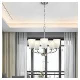 RICHARDERY Modern 6-Light 3-Color Changing Integrated LED Black Chandelier for Foyer Entryway Living Room