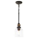 Knollwood 7 in. 1-Light Black Bronze Vintage Brass Accents Industrial Mini Pendant Light for Kitchen