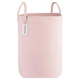 Cotton Rope Laundry Basket Hamper for Girls Kids Baby Nursery Hamper Bin Woven Storage Basket for Living Room Girls room Boho Tall Rope Baskets for Blanket Toys Large light pink