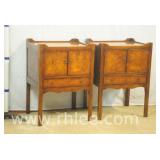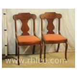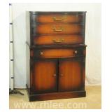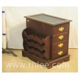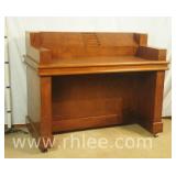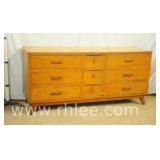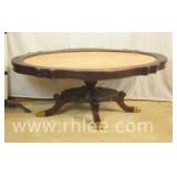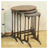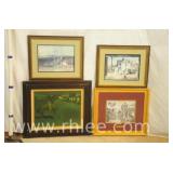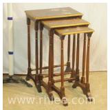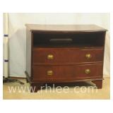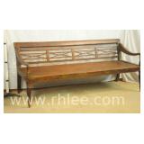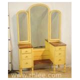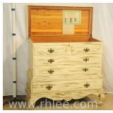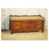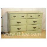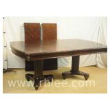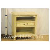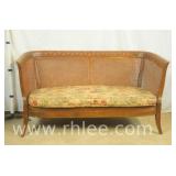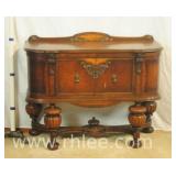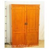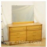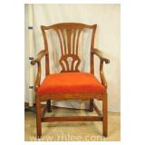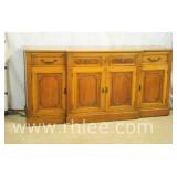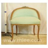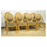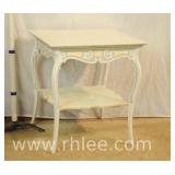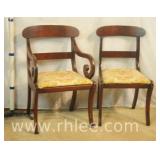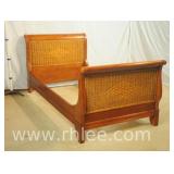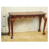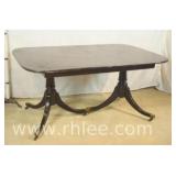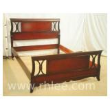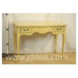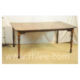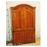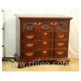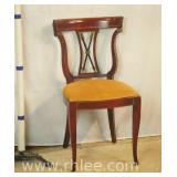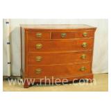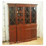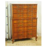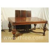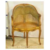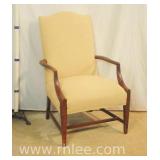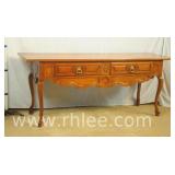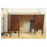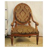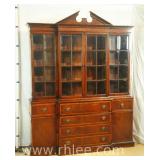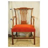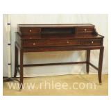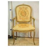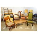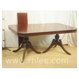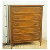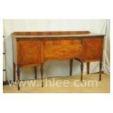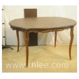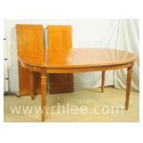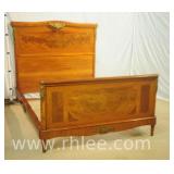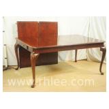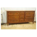 | This auction is filled with antiques, fine furniture, hand knotted rugs, used furniture, lamps, mirrors, prints, accessories and more! Item Description 1. Crotch mahogany slant front desk with ball in claw feet; 55-193 - (finish as-is) - 30x16.5x40.5 2. Century 6 drawer double dresser with inlaid/banded top; 55-187 - (small chip in veneer and molding; scratch on top) - 63x19x30.5 3. Oversized open arm chair with fluted legs; 663-103 - 32x30x43 4. Drexel yew wood entertainment armoire; 55-182 - (hole in back of cabinet to accommodate TV; finish as-is) - 39x19.5x64 5. Hekman inlaid crotch mahogany single drawer side table; 55-129 - 20x26x24 6. Set of 8 Harris Marcus gold framed French style dining chairs; 55-150 - Made in Italy - 21x23x37.5 7. Pair of carved mahogany pedestal base side tables; 55-235 - ball in claw feet - 21.5x21.5x29.5 8. French style marble top coffee table with scalloped edge; 55-198 - 55x26x17.5 9. Carved 2 door armoire with green painted trim; 55-183 - fitted interior - adjustable shelves - fluted columns - (hole in top) - 56x21.5x81 10. Inlaid crotch mahogany French style full size bed with matching rails; 55-169 - bronze mountings - (missing 1 threaded piece to bolt rail to headboard) - 61x85x56.5; 60x82 inside rails 11. Ethan Allen painted Windsor style spindle back bench; 55-162 - turned legs and stretchers - (chips in paint) - 53.5x22x38.5 12. Large walnut cabinet; 55-148 - 4 drawers beside 1 door - individual beveled glass - (finish as-is) - 45x30x40 13. Pair of caned French style arm chair with stretcher base; 55-165 - (broken cane in 1 place on back; finish as-is) - 26x27.5x35 14. Inlaid mahogany narrow drop leaf dining table; 55-184 - (finish as-is; crack on leg) - 40x13x29 leaves down; 40x54x29 leaves extended 15. Taylor Made mahogany chest on chest; 55-186 - (finish as-is) - 34x19x51 16. Set of 3 inlaid mahogany nesting tables with tapered legs; 55-117 - (finish as-is) - 22x16x25 largest table 17. Lane pine 2 part slant front blind door secretary; 55-171 - 34.5x17x75.5 18. Milling Road by Baker decorated occasional table; 55-241 - black crackle finish frame - 29x29x28 19. Pair of carved French style open arm chairs; 55-212 - x stretcher base - (one cane seat as-is; finish as-is) - 24x21x38 20. Bamboo 2 door end table; 55-185 - 23.5x20x26 21. Walnut chest with step back drawer and backsplash; 55-201 - 36x19x52 22. Cherry 3 drawer Queen Anne style low boy; 55-221 - (finish as-is) - 38x20x31.5 23. Pair of oak 3 drawer bachelor's chests; 55-220 - (chips and repairs to veneer on top; finish as-is) - 32x18x30 24. Decorated distressed country French style writing desk with drawer; 55-156 - cabriole legs - (missing 1 drawer guide) - 57.5x30x29.5 25. Carved mahogany ladder back open arm chair; 663-104 - 24.5x27x39 26. Henredon large parquet top coffee table with carved base; 55-173 - 68x30x16 27. Pine bow front 7 drawer chest; 55-197 - 41.5x19x45.5 28. Pine bow front 7 drawer chest; 55-196 - 41.5x19x45.5 29. Banded mahogany 2 part breakfront with desk drawer; 55-116 - individual beveled glass panes - (finish as-is) - 71.5x16.5x92 30. Pair of Lineage cherry 3 drawer bedside chests; 55-243 - 28x17x26.5 31. Cherry twin size sleigh bed with rails; 55-133 - woven wicker panels on headboard and footboard - 42.5x86.5x38; 40x78 inside rails 32. Pine round drop leaf breakfast table; 55-218 - (finish as-is) - 42x26x29.5 leaves down; 42x42x29.5 leaves extended 33. Mahogany 3 tier step back end table with leather tops; 55-219 - wire doors - (missing 1 pull) - 19x32x27.5 34. Pine open front bookcase with drawer; 55-224 - adjustable shelves - (needs more shelf pegs; finish as-is) - 46.5x13.5x72.5 35. Early carved French style occasional table with stretcher base; 55-240 - distressed finish - (top is loose and has a separation) - 42x26.5x29.5 36. Large walnut mid-century 2 part display cabinet; 55-205 - chrome legs - sliding glass doors - adjustable glass shelves - 84x19.5x81 37. Pair of mahogany 2 door over 1 drawer end tables; 55-233 - (finish as-is) - 21x18x30 38. Carved oak side table with x stretcher base; 55-176 - (finish as-is) - 18x18x28 39. Cherry French style 2 drawer sideboard with cabriole legs; 55-251 - raised panel sides and drawers - (finish as-is) - 78x23.5x32.5 40. Carved French style open arm chair with tapestry seat and back; 55-265 - (some frayed edges on seat) - 25x25x42 41. Set of 3 oval mahogany nesting tables; 702-119 - (braces added on side) - 22x14x25.5 42. Thomasville 4 drawer block front bachelor's chest; 55-271 - 36x19x33.5 43. French style serpentine front china cabinet with mirror back; 55-110 - curved glass on front and sides - x stretcher bases - 2 drawers - 46x17.5x65.5 44. Early inlaid mahogany console table with drawer; 55-188 - turned legs - 39x20.5x31 45. Pair of carved leather top single drawer lamp tables; 55-128 - painted (paint as-is) - 4 leg pedestal base - 29x29x26.5 46. Crate & Barrel 3 drawer bamboo timber writing desk; 55-252 - drop front keyboard drawer - 58x22x31 47. Early mahogany 4 drawer low chest; 55-256 - reeded legs - 40x17.5x38.5 48. Round burl top dining table with 1 leaf; 55-216 - reeded legs - (finish as-is) - 43x43x30; 19.5" leaf 49. Pennsylvania House cherry queen size bed with rails; 55-142 - turned posts and legs - 64.5x84x41; 60x80 inside rails 50. Yield House pine single drawer end table with tapered legs; 55-214 - 26x26x22.5 51. Oak 2 part Hoosier cabinet with frosted glass doors; 55-105 - porcelain top - (missing slide-out board) - 49x26x68.5 52. Pair of carved 2 tier French style side tables; 55-123 - (finish as-is) - 25x25x27 53. Oak 2 drawer mission style library table; 55-249 - (finish as-is) - 50x23.5x30 54. Oak 2 part bow front breakfront with etched glass doors; 55-190 - lighted interior with glass shelves and mirror back - 60x16x79.5 55. Banded oak double pedestal dining table with 2 skirted leaves; 55-190 - fluted pedestals - 45x72x30.5; 14" leaves 56. Set of 8 dining chairs with fluted legs; 55-190 - 2 
