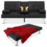 Faux Leather Upholstered Modern Convertible Futon, Adjustable Folding Sofa Bed, Guest Bed w/Removable Armrests - Black