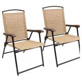 Devoko Patio Folding Chair Deck Sling Chair Camping Garden Pool Beach Using Chairs Space Saving Set of 2 (Beige)