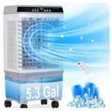 5.3 Gal Large Water Tank for Continous Cooling: Swamp cooler with a large 5.3 gallon water tank and 4 ice packs delivers up to 20 H for extended use without frequent refills. Manually add water to the upper water tank and you can quickly enjoy the cooling effect. The visible water level line enables you to promptly see the remaining water volume and replenish the water in time