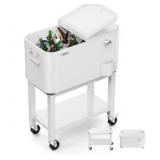 60 Quart Portable Patio Rooling Cooler Cart Detachable White