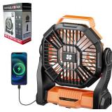 Portable Camping Fan Rechargeable ,Battery Operated Fans with Light 4 Speeds & Hook, USB Rechargeable Outdoor Camping for Tent, Orange