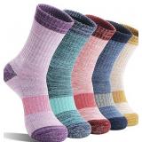 Merino Wool Hiking Socks Thermal Warm Winter Cozy Cushioned Moisture Wicking Crew Socks for Women 5 Pairs - Size Large