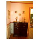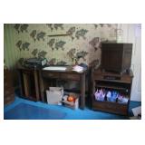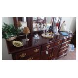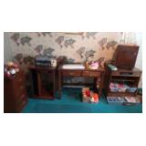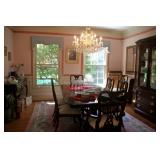 FURNITURE: Gorgeous American Drew Dining Room Set Dual Pedestal Table with Leaves Fantastic American Drew Bedroom Set King 4- Poster Bed 3-Seat Upholstered Reclining Sofa and Matching Recliner Headboard 4 Piece Oak Entertainment Unit/Display Cabinet Oval Table and 6 Chairs Desks White Rectangular Table and 4 Chairs Tan Octagon Table and 4 Chairs Black Rectangular Table with Umbrella and 4 Chairs Black Wrought Iron Round Table and 6 Chairs and Side Table Outdoor Master Forge Grill