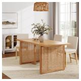 (104). Nathan James Willow Boho Dining Table for 6 with Solid Wood Legs, 6-Person Natural Wood Dining Table, Warm Pine or Brown with Bohemian Rattan Accent