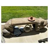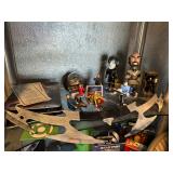 Disney resort/park/Harvey's Couture purses and other name brands Lots and lots of bagged costume jewelry from this estate Disney clothing Sportswear shirts and jerseys Adult Halloween costumes Coca Cola Dragons Fairies Lots of packaged Matchbox/Hot Wheels cars Hockey puck collection, some autographed 1930-1950's costumes and puppets Carousel horse Large doll furniture Antique large doll stroller MCM low profile couch with lounge 5-piece wood wall unit-each piece can be used separately Beautiful sofa table Oak wardrobe Oak mirrored dresser Full size blonde sleigh bed and mattress 2 flat screen televisions Wired surround sound system Bar height glass table and 2-bar stools Swivel accent chair 2 1930's regulator style wall clocks Antique cuckoo clock French fashion dolls and other bisque dolls Curio cabinet Lladro figurines Neon/LED lights Massive SciFi collection of Star Trek, Star Wars, Alien and UFO Star Trek officer outfits Life size cardboard cutout of Star Trek Captain Kirk and McCoy Cardboard cutout of The Creature From the Black Lagoon M&M store display characters 10' working tiki fountain Display shelving Bookcases Tea cart Multiple jewelry boxes large and small Horse framed art, statuary, plates Unicorn display Name brand women's clothing most size small and shoes size5-6 King size bed with mattress Custom bedroom furniture Bench storage Metal patio table and chair set Firepit Concrete iguana bench Pilates Reformer and fitness other equipment Concrete mushroom table and two chairs 4' Metal dinosaurs and other characters Unusual yard art Lots of bagged smalls Plushies and Ty Beanie Babies Lifesize mummy mannequin Taco Bell dog collection Different holiday indoor and outdoor decor Lots of fill-a-bag for $5 items ...and we are still finding more and more to put out!