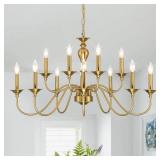 (225) 12 Light Gold Farmhouse Chandeliers for Dining Room Light Fixtures Over Table,Industrial Candle Hanging Chandelier for Living Room Foyer Staircase Bedroom Kitchen Island Restaurants