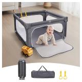 - Auto Close & One-Handed Operation You can, of course, hold the baby in one hand and open the gate with the other hand, because we adopted a unique auto close design. Meanwhile, the opening of the gate is 21.6", wide enough to get through with laundry bag or groceries in your hand.
