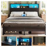 Metal Bed Frame,King Size Bed Frame with Storage Space,Heavy Duty Sturdy Mattress Foundation,Easy Assembly,No Box Spring Needed, Black,14 Inch,King