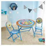 - DURABLE CONSTRUCTION: Frame of table and chairs is made of tubular steel that is supportive for every day use. Chairs and Table legs both feature a locking mechanism to keep position in place once opened. Please supervise your children when opening/closing the chair.