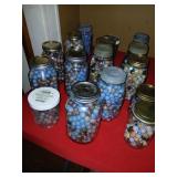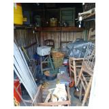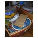 Items include: vintage furniture, vintage glassware, Fiesta Ware, large collection of WV made marbles, vintage Christmas blow molds, two outbuildings of miscellaneous merchandise, three-wheel cycle, portable generators, Radio Flyer wagon, lawn art, tools,